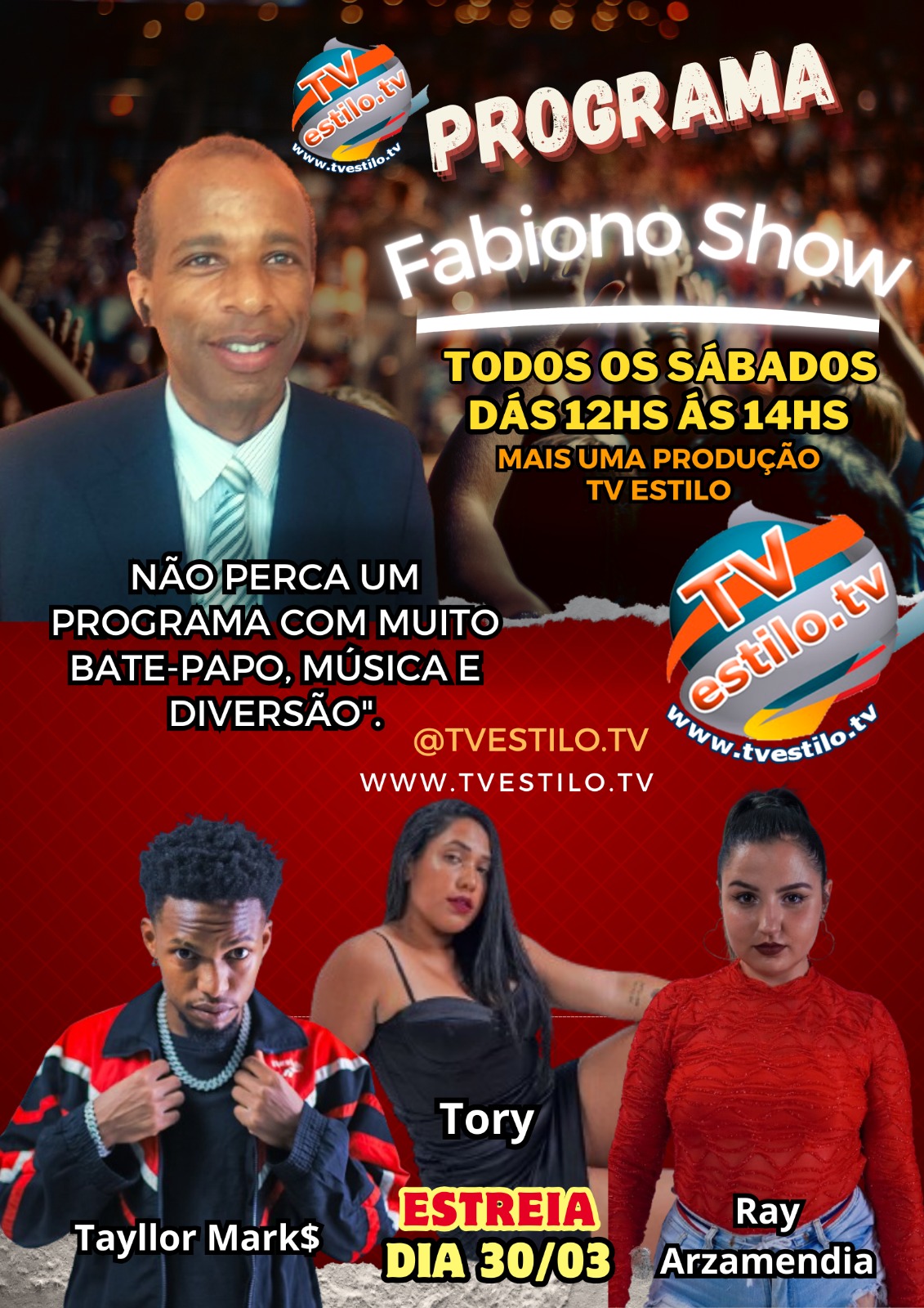Hoje, dia 13 de março, tem gravação do Programa Fabiano Show na TV Estilo que estreia dia 30 de março, sábado, ao vivo, das 12 às...