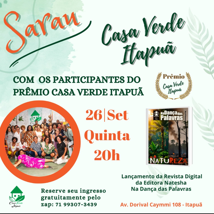 Na próxima quinta-feira, 26 de setembro, acontece o SARAU CASA VERDE ITAPUÃ com os compositores e intérpretes que participaram do Prêmio Casa Verde Itapuã. Será...