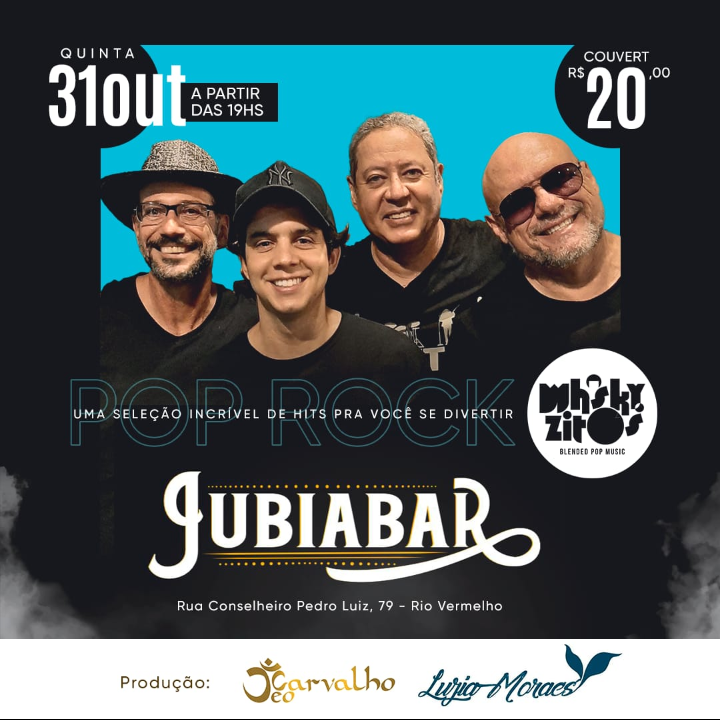 A Banda pop rock Whiskyzitos se apresenta nesta quinta, dia 31 de outubro, às 19h, no Jubiabar, no boêmio bairro Rio Vermelho. O grupo trará...