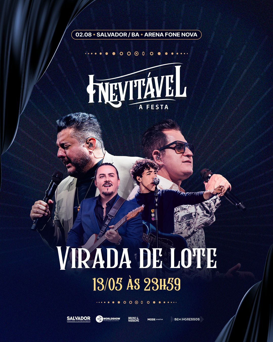 ‘Inevitável – A Festa’ anuncia virada de lote dia 14 de maio Show da dupla Bruno & Marrone acontecerá 02 de agosto, na Arena Fonte Nova...