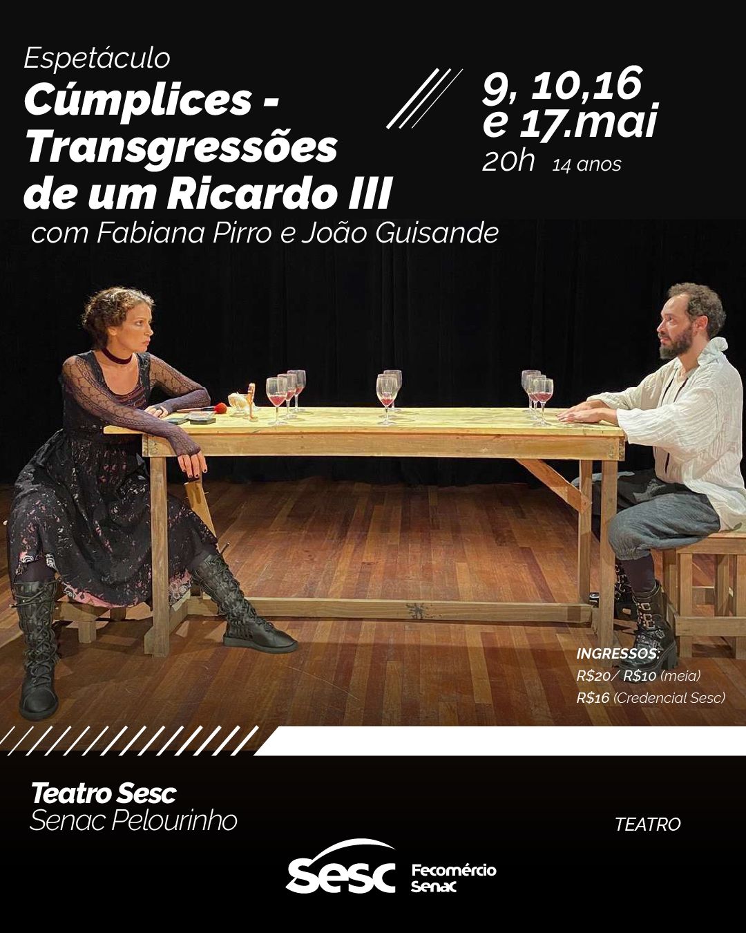 Curtíssima temporada de Cúmplices – Transgressões de um Ricardo III no Sesc Pelourinho. Dias 9, 10, 16 e 17 de maio *(sextas e sábados)*, 20h, os...