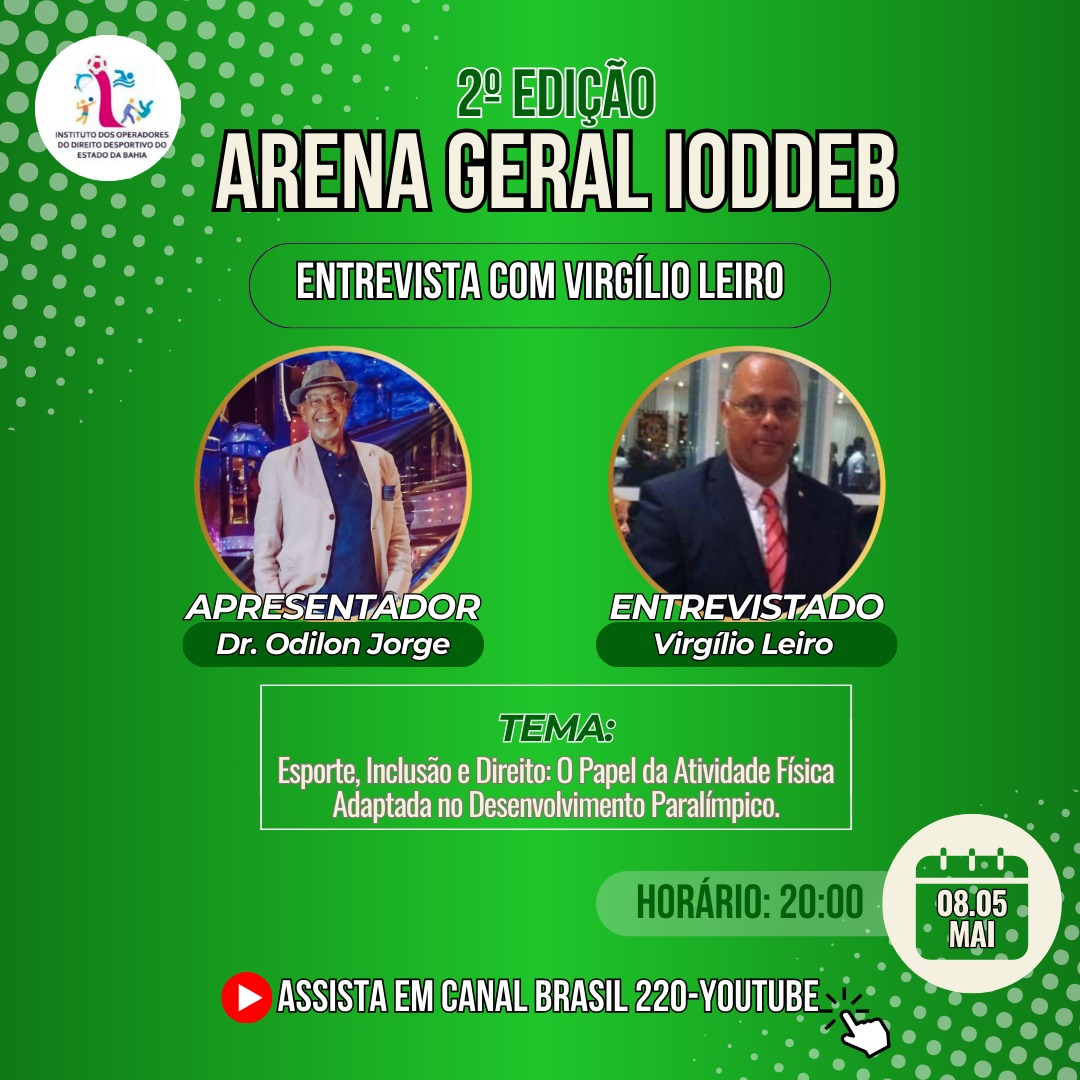 Nesta quinta-feira, às 20h, teremos uma entrevista imperdível com o Professor Virgílio Leiro, coordenador do Programa de Atividade Física Adaptada do Instituto de Neurologia da Bahia...
