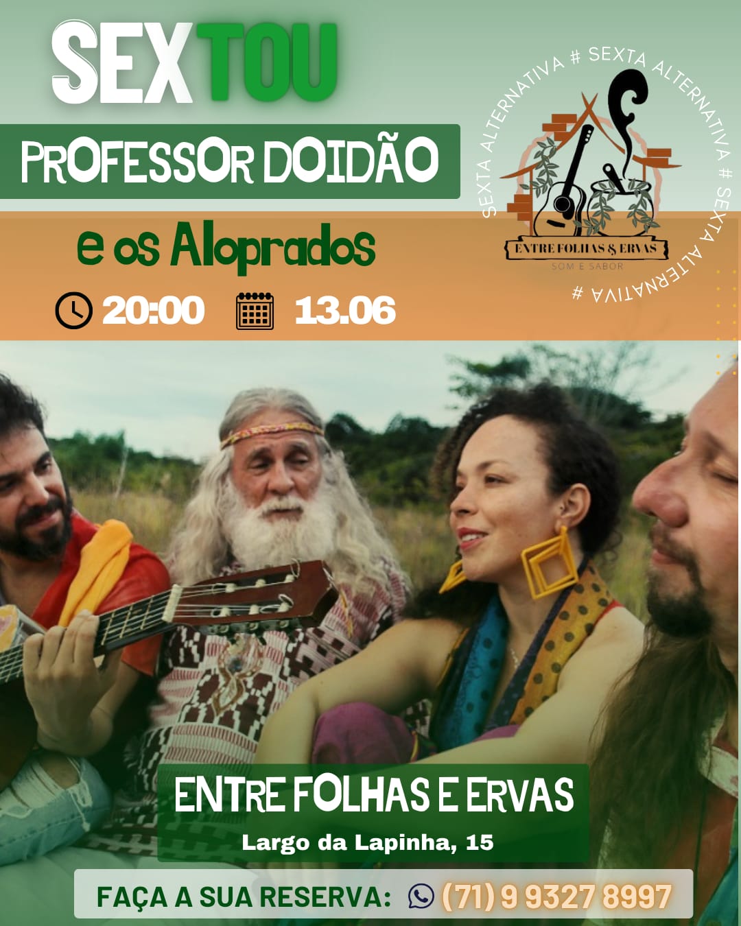 O show da banda “Professor Doidão e os Aloprados” acontecerá no dia 13 de junho (sexta-feira), a partir das 20h, no Entre Folhas e Ervas, na...