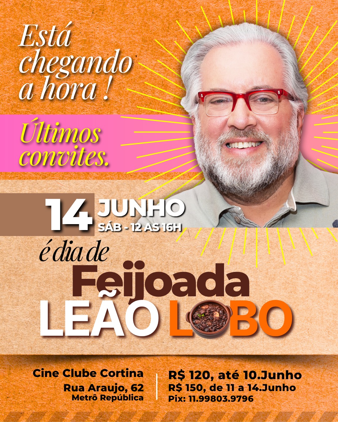 Está chegando a hora! Últimos convites. Faça a sua reserva agora mesmo. Feijoada do Leão Lobo, dia 14 de junho, sábado, das 12 as 16 horas...
