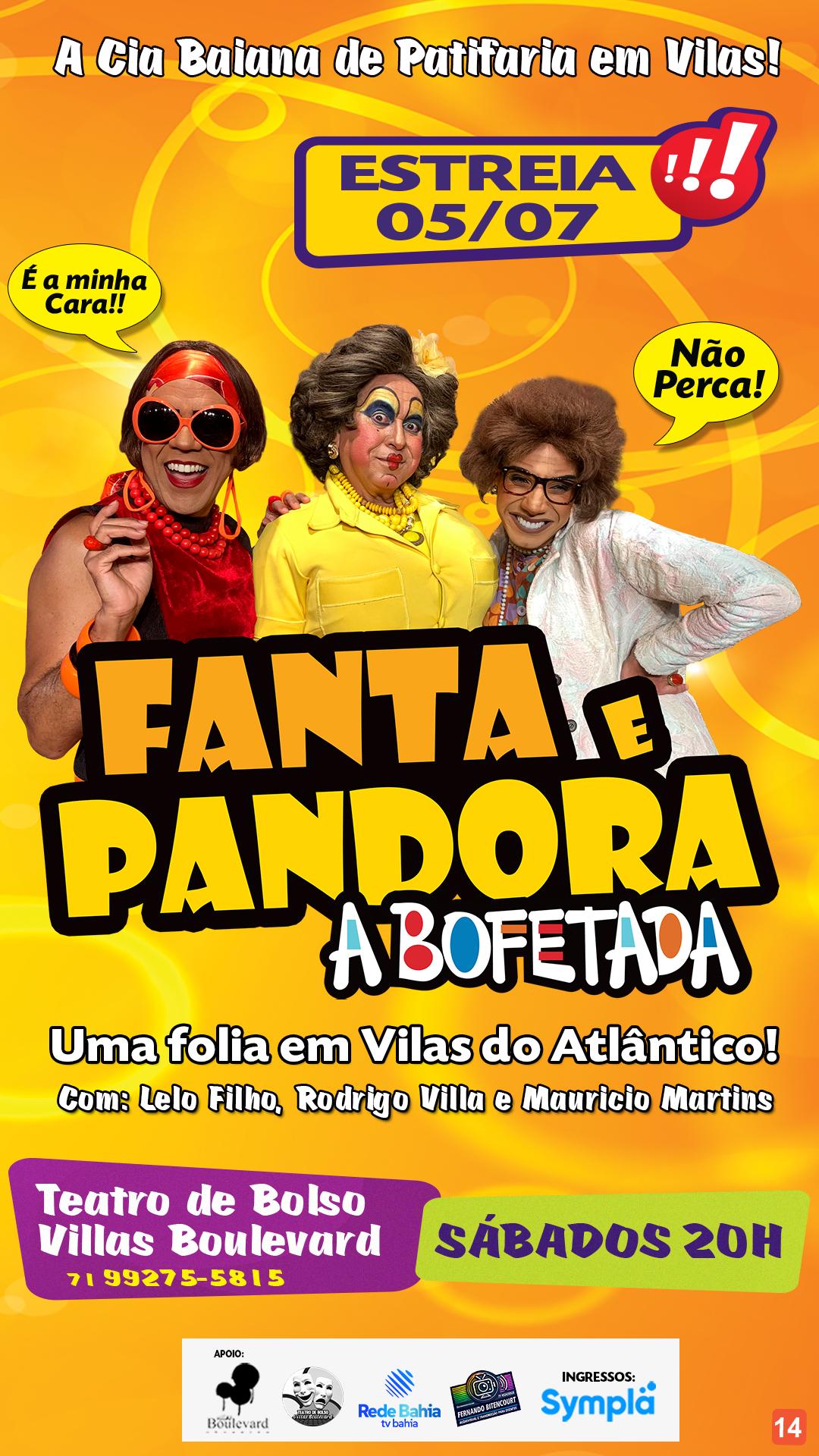 A CIA BAIANA DE PATIFARIA apresenta: FANTA & PANDORA, UMA FOLIA EM VILAS! Personagens do megassucesso A BOFETADA voltam a VILAS DO ATLÂNTICO! EM JULHO NO...