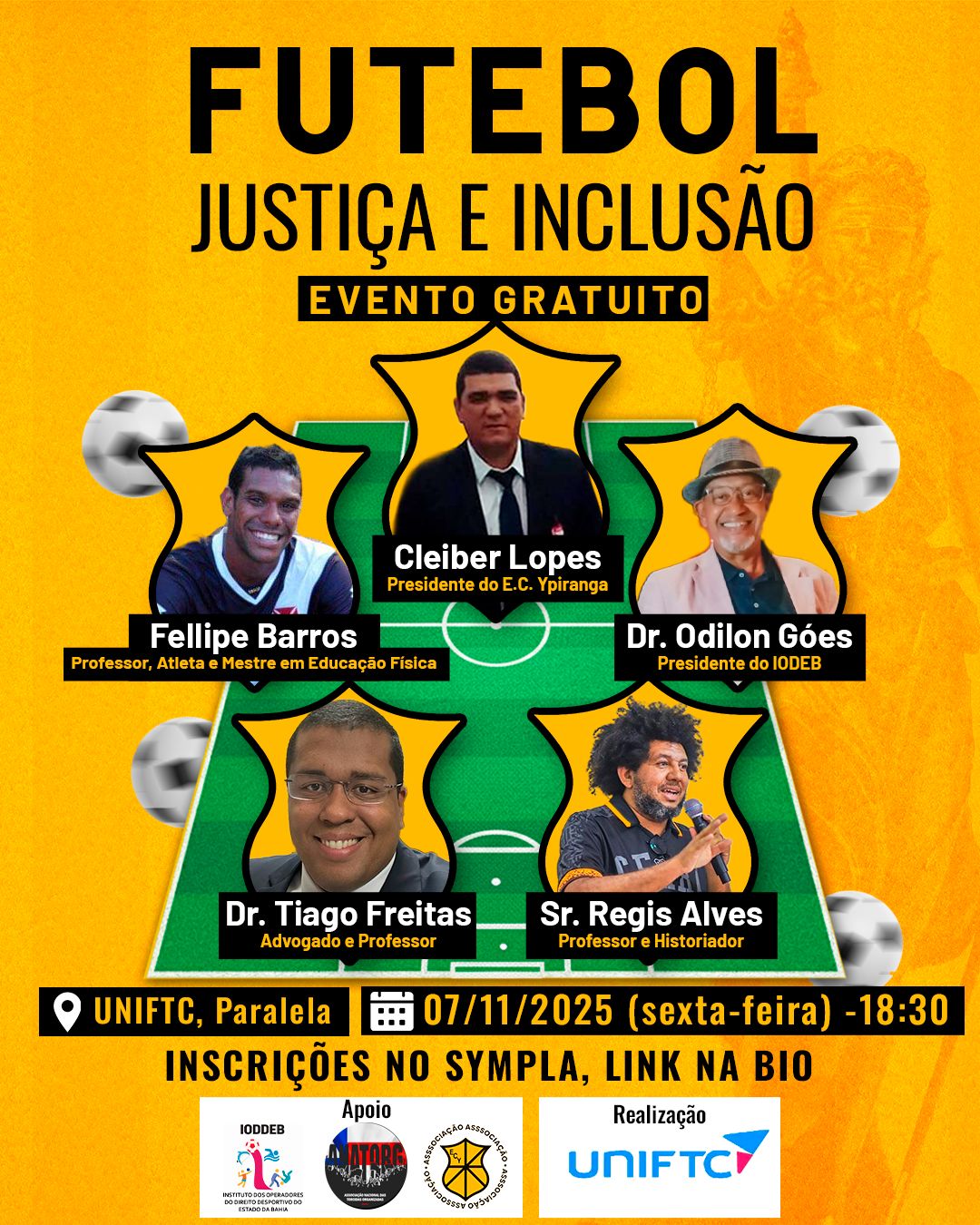 Junte-se a nós para uma noite de diálogo fundamental sobre o papel transformador do futebol na sociedade, abordando temas cruciais como Justiça, Inclusão e o Esporte...