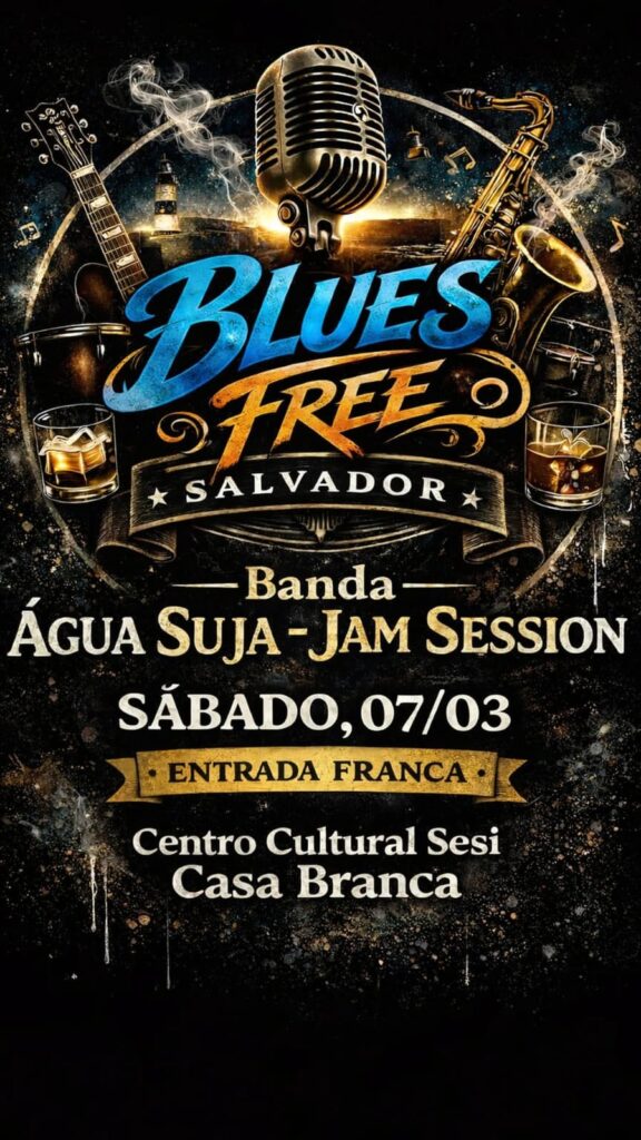 A banda anfitriã *Água Suja*, referência na cena blueseira de Salvador, conduz a noite com *Jerry Marlon* (baixo), *Zito Moura* (teclados), *Brian Knave* (bateria)