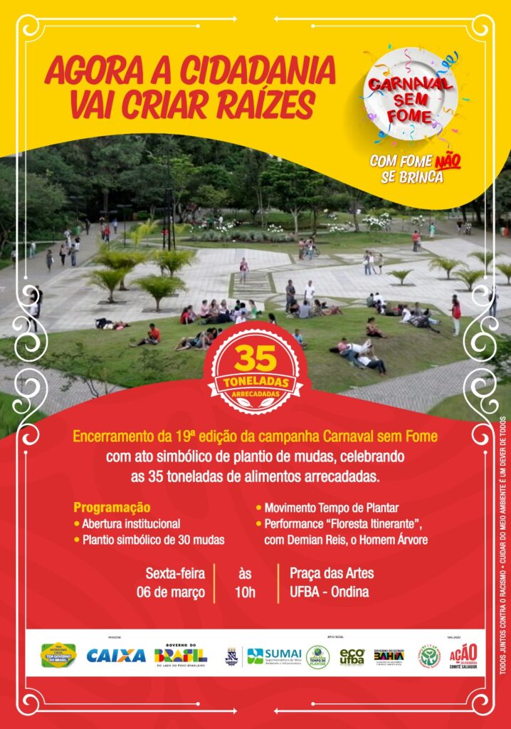 #CarnavalSemFome #ComFomeNãoSeBrinca #Solidariedade #MeioAmbiente #AçãoDaCidadania #VivaCultura #Bahia #PlantioDeMudas #TempoDePlantar