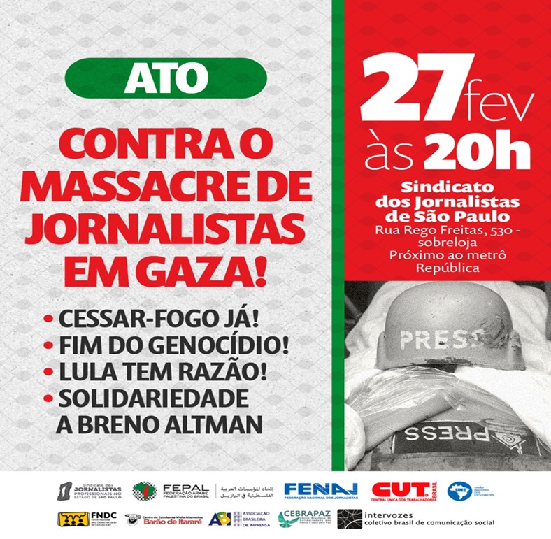 FENAJ e organizações promovem ato nacional contra o massacre de jornalistas em Gaza Read More »