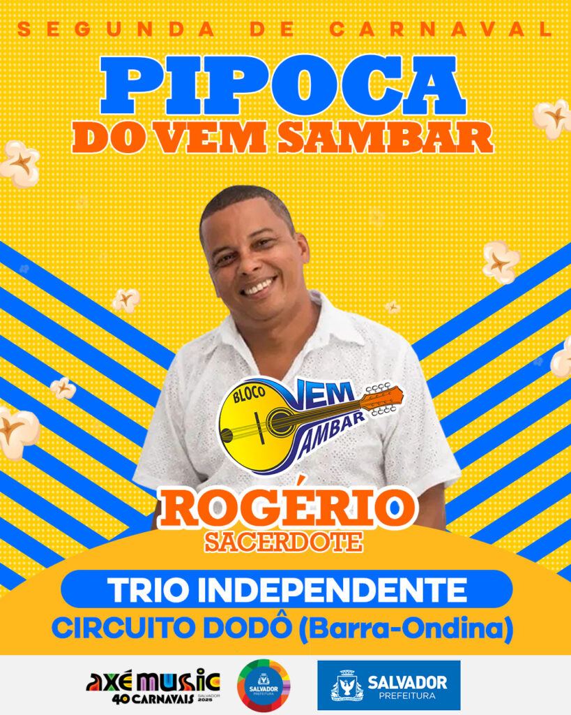 Trio “Pipoca do Vem Sambar” anima o Circuito Dodô (Barra-Ondina) Segunda de Carnaval Rogerio Sacerdote “Bambeia” comemora 35 anos de Samba Conhecido em todas as rodas de samba da Bahia, Rogério Sacerdote ou “Rogério Bambeia” celebra 35 anos no cenário musical de forma artística e profissional, sendo pontuado como um dos melhores intérpretes, compositor e […]