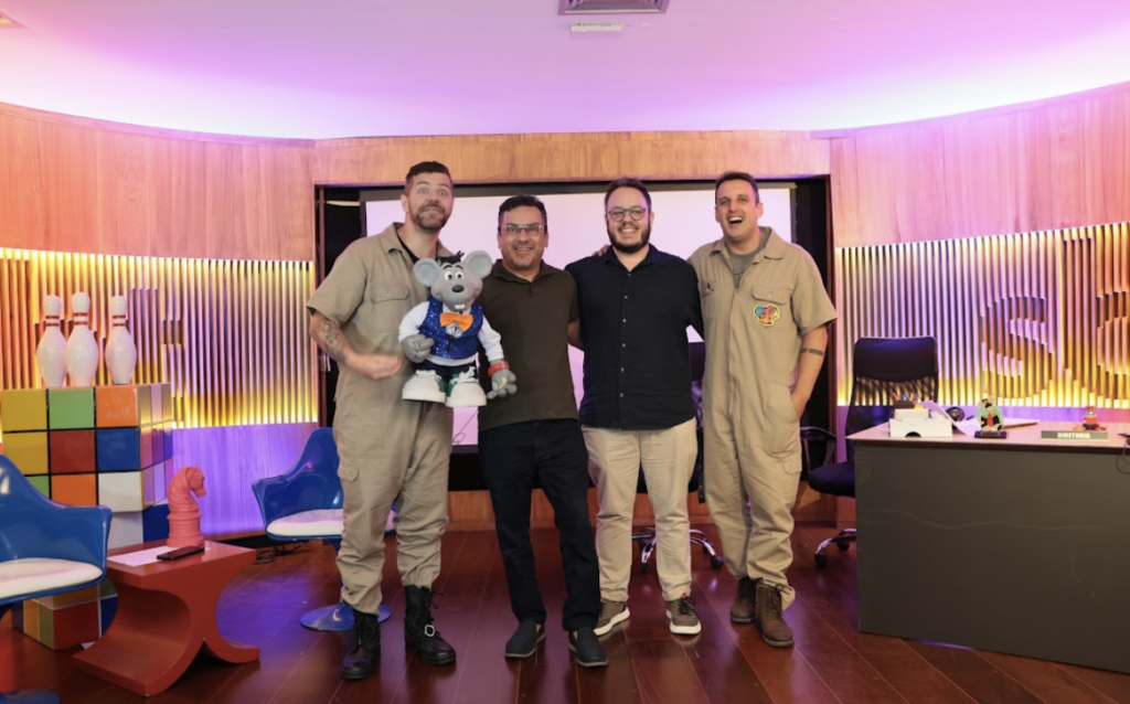 Seguindo a proposta do programa, a coletiva fugiu do formato tradicional e trouxe ao palco momentos de improviso e interação. Os apresentadores Victor Sarro e Rodrigo Capella, acompanhados de Xaropinho, surpreenderam os convidados com uma entrada em formato de stand-up, antecipando o clima leve e irreverente que marca o projeto.