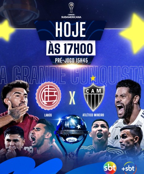 Chegou a hora da verdade! Depois de uma campanha intensa, marcada por viradas, disputas acirradas e muita emoção, Lanús e Atlético-MG entram em campo neste sábado (22) para decidir quem levanta a taça da Conmebol Sul-Americana. A final acontece no estádio Defensores del Chaco, em Assunção, no Paraguai, e o público acompanha cada momento no SBT, com transmissão na TV, no streaming +SBT e no YouTube do SBT Sports.