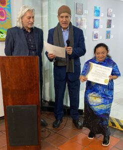 Também foi prestada homenagem ao trabalho social de LUZ DARY GOMEZ GARCIA, artista visual, gestora cultural e líder social colombiana, cujo comprometimento e paixão transformaram a vida de inúmeras pessoas. Seu trabalho humanitário, realizado sob a direção da FUNDAÇÃO CATALINA MUÑOZ, tem prestado apoio a inúmeras famílias vulneráveis ​​na Colômbia por mais de duas décadas.
