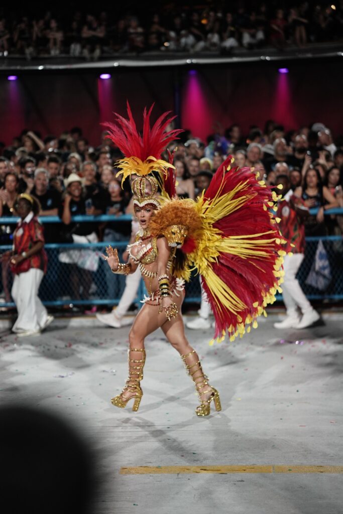 A Musa da escola de samba, entregou muito samba no pé e glamour, representando a sua região de origem