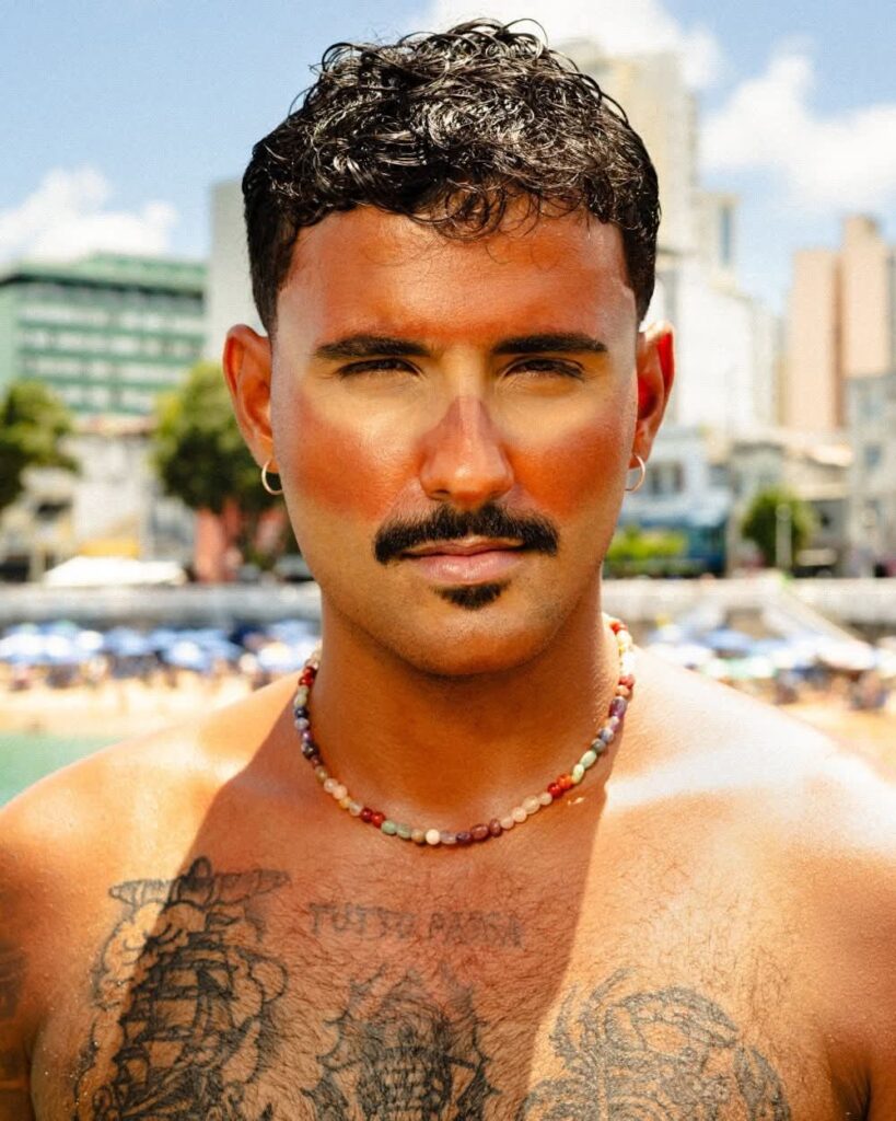 Nesse sentido, “Veraneio” se apresenta como um projeto que extrapola o formato musical e se aproxima de uma narrativa cultural. É sobre pertencimento, mas também sobre escolha. Sobre permanecer, criar e projetar a própria história a partir do lugar de onde se vem e que se decide chamar de casa. A primeira faixa a nascer foi “Queimadinha”, eixo emocional e estético do EP. A canção narra as vivências de um dia no Porto da Barra, homenageia Bell Marques e apresenta uma linguagem pop latina — referência que hoje domina o cenário global. A ideia surgiu a partir de uma canção da cantora espanhola Rosalía, quando Pizane percebeu que aquela estética urbana e sensorial poderia dialogar com os ritmos e códigos da Bahia. “Aquilo me deu um estalo. Pensei: por que a gente não pode fazer isso aqui, com a nossa cara, com o nosso som, com a nossa história?”, conta.