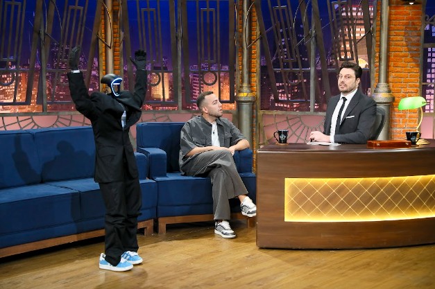 Logo na entrada, Rangel surpreende ao chegar acompanhado de um robô humanoide vestido com traje social, responsável por render algumas das cenas mais divertidas do programa. O equipamento, que possui inteligência artificial e é capaz de executar diversas tarefas, vira alvo das brincadeiras de Danilo, que chega a simular uma “luta” com o robô. Em outro momento descontraído, o apresentador veste uma máscara do Homem de Ferro, aumentando o clima bem-humorado da entrevista.