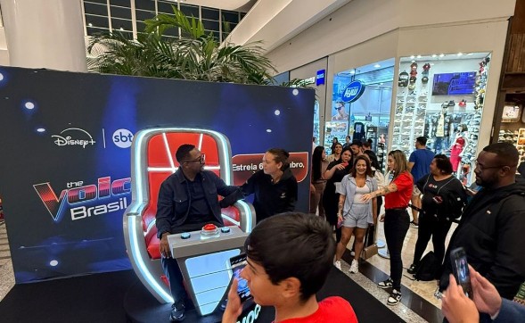 SBT leva cadeira do The Voice Brasil ao Shopping Center Norte e atrai fãs para meet & greet especial com Mumuzinho