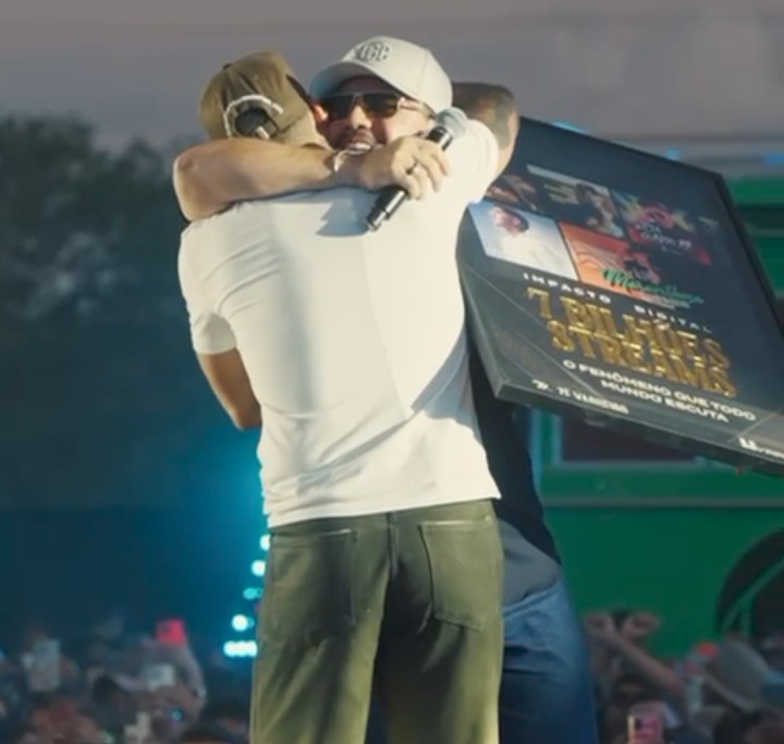 Empresário e amigo, Xand Avião subiu de surpresa no palco da gravação de Zé Vaqueiro para entregar uma placa comemorativa aos mais de 7 bilhões de streams do artista nas plataformas digitais.