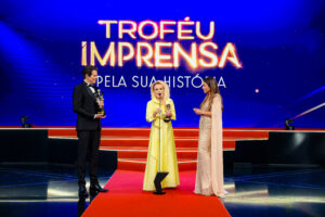 Na sequência, um dos momentos mais emocionantes da noite ficou por conta de Ana Maria Braga, que recebeu o “Troféu Imprensa Pela Sua História”, em reconhecimento à sua trajetória e contribuição para a televisão brasileira. Referência para diferentes gerações, a apresentadora foi homenageada em um tributo que relembrou momentos marcantes da carreira e sua conexão com o público.