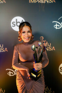“Eu não venho aqui há muito tempo, sou da época da TVS, então é incrível estar aqui, é uma coisa de criança mesmo. Eu nunca pensei em trabalhar na TV e, de repente, estou aqui recebendo o Troféu Imprensa. Não tem essa coisa de vira-latismo, não cabe pra mim, o Silvio Santos foi um dos maiores comunicadores do mundo… O prêmio é sempre muito importante para a gente agradecer às pessoas. O Troféu Imprensa está no imaginário popular e estar aqui no SBT, recebendo um prêmio de tantos anos de história na televisão brasileira, é uma honra”, declarou.