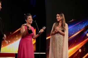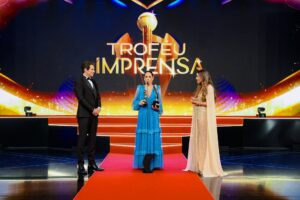 Outro momento marcante da noite foi protagonizado por Glória Pires, que recebeu o “Troféu Imprensa Pela Sua História”, em reconhecimento à sua trajetória e contribuição para a teledramaturgia brasileira. Com décadas de carreira e personagens icônicos, a atriz foi homenageada em um tributo que destacou sua importância para a televisão.