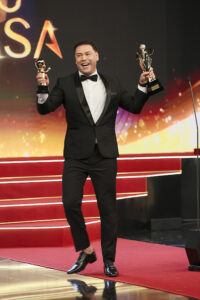 De volta à emissora onde construiu parte de sua trajetória, Dudu Camargo subiu ao palco para entregar anunciar o vencedor da última estatueta da noite, a de revelação do ano de 2025, vencida pelo ator Pedro Novaes.