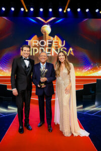 Agora como parte da casa, Galvão Bueno também marcou presença na cerimônia para receber mais sete troféus, ampliar sua coleção de estatuetas e celebrar essa nova fase da carreira, que inclui a narração da Copa do Mundo deste ano pelo SBT.
